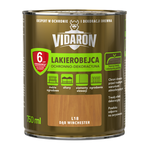 ¹ Warranty Issuer’s name and address: Fabryka Farb i Lakierów Śnieżka SA, 00-854 Warszawa, Aleja Jana Pawła II 23, Poland. Warranty coverage and period: 6 years from the original purchase date of the product and in the Republic of Poland. If used and handled per the instructions on the product label, the Warranty Issuer guarantees effective protection of wood for 6 years from the date of original purchase. If any defect in protective performance of the applied product is found, the buyer shall be entitled to receive reimbursement of the product purchase price. The Warranty Issuer does not preclude, restrict or suspend the buyer’s rights established by the laws of statutory warranty of defects in sold products. See the full warranty terms and conditions at www.vidaron.pl